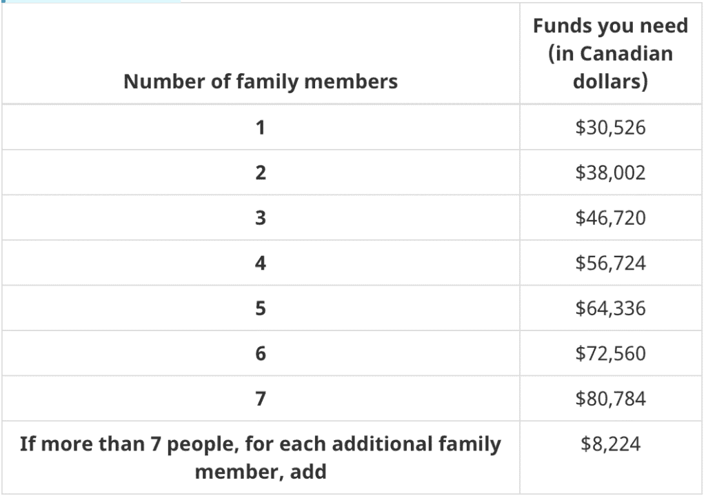 - family in Canada must demonstrate Low Income Cut Off (see minimum requirements below)